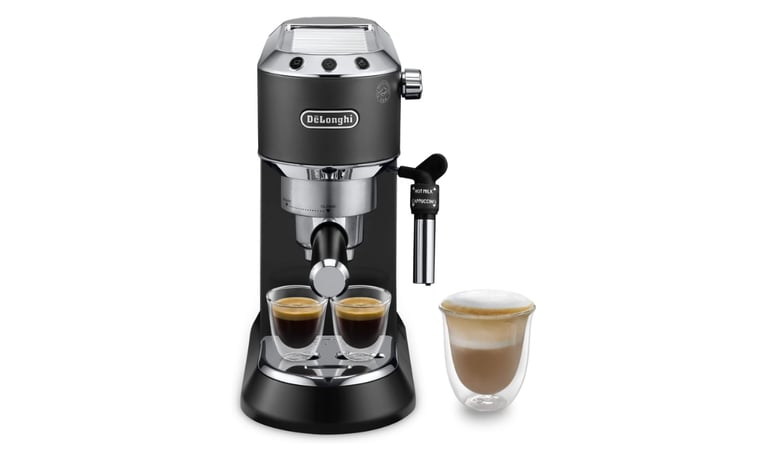 Die De'Longhi Dedica Espressomaschine bringt italienisches Barista-Feeling mit ihrer kraftvollen 15-Bar-Pumpe und elegantem Edelstahl-Design in jeden Haushalt.